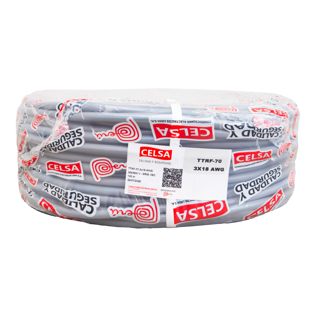 Cable vulcanizado TTRF-70 3×18 AWG gris Celsa