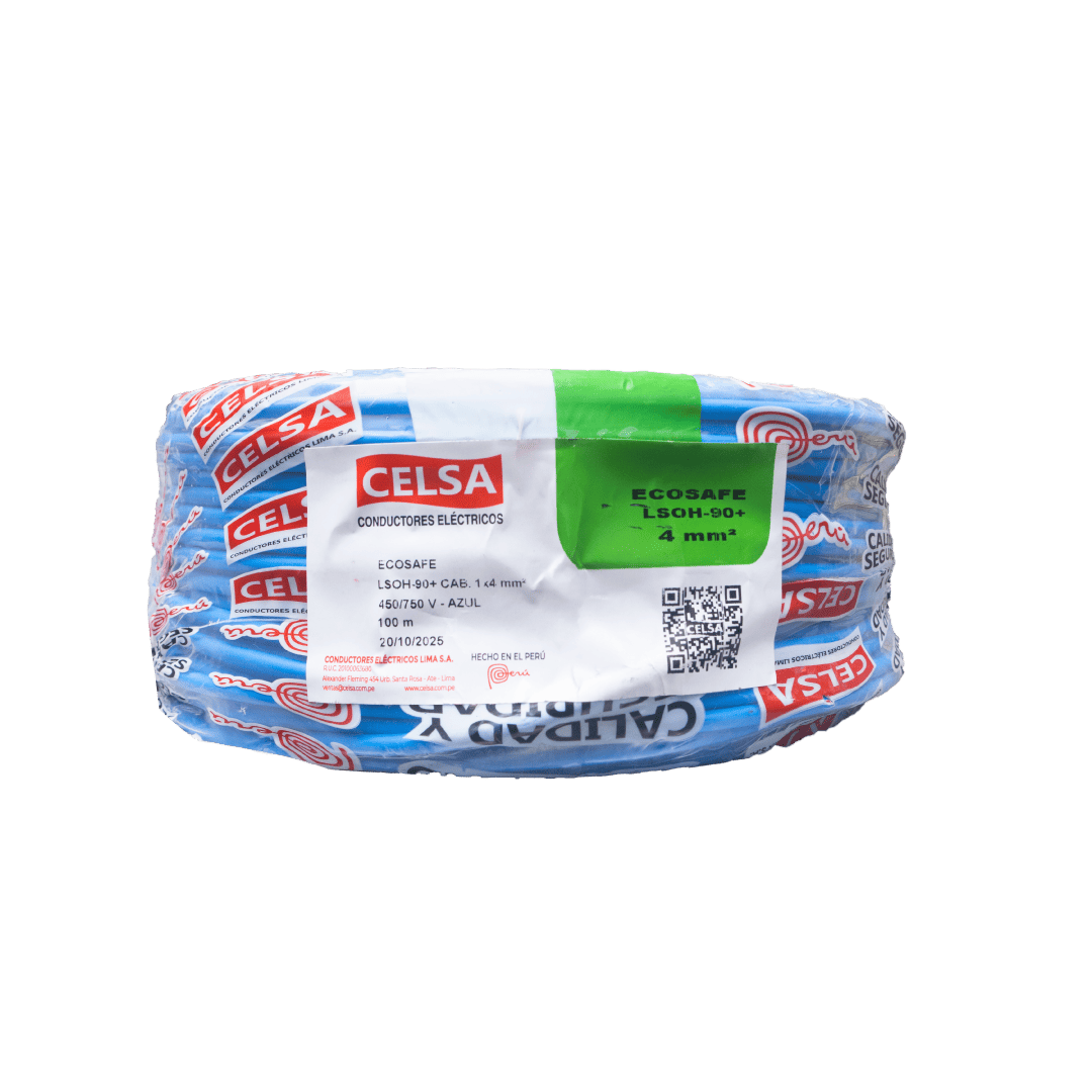 El cable eléctrico Celsa LSOH-90+ de 4 mm2 en color azul es de cobre puro y garantiza un rendimiento óptimo y duradero en cualquier aplicación. Cuenta con su aislamiento libre de halógenos y su resistencia al fuego. Es ideal para ser instalados en lugares con pública concurrencia como hospitales, centros comerciales, discotecas, condominios, teatros, etc.