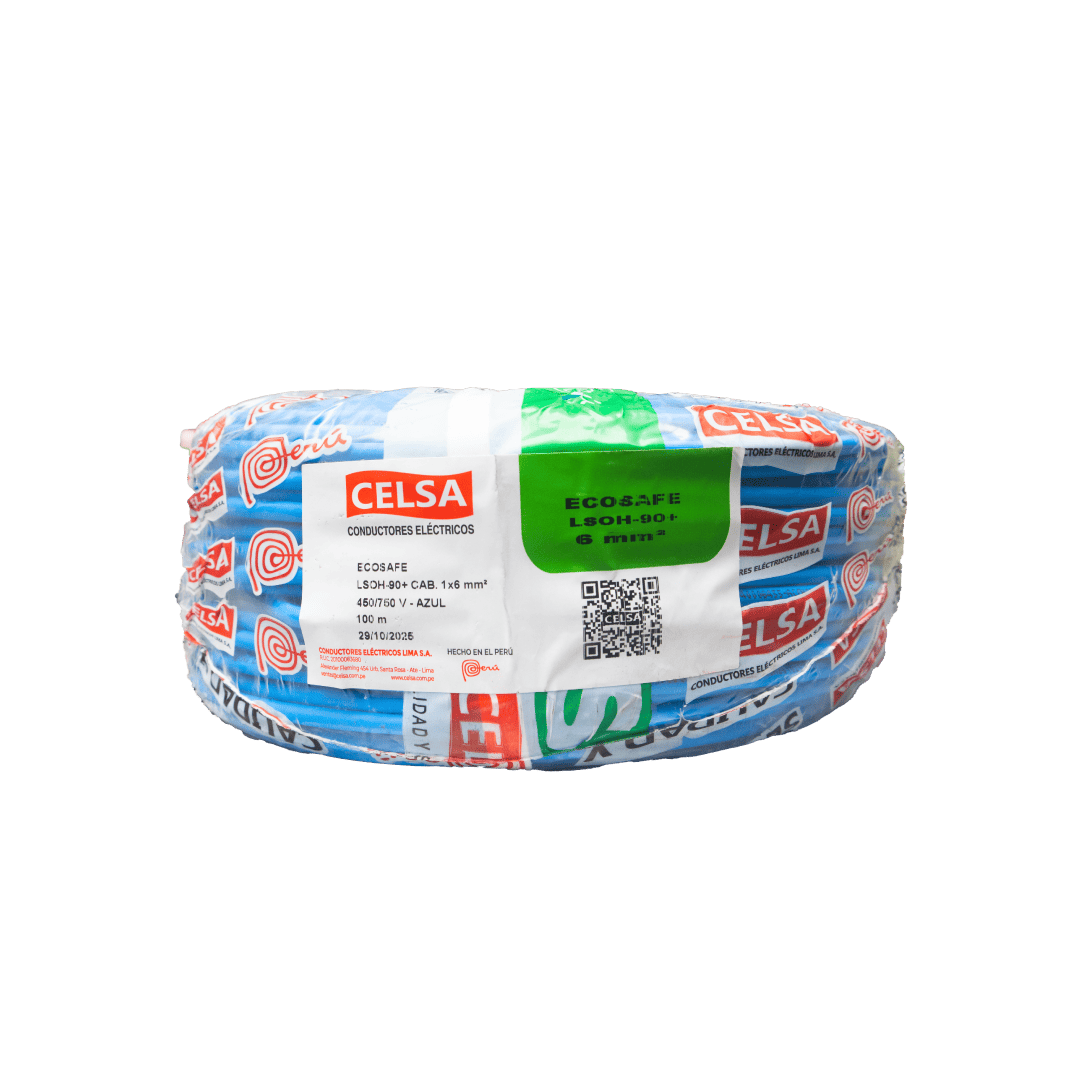 El cable eléctrico Celsa LSOH-90+ de 6 mm2 en color azul es de cobre puro y garantiza un rendimiento óptimo y duradero en cualquier aplicación. Cuenta con su aislamiento libre de halógenos y su resistencia al fuego. Es ideal para ser instalados en lugares con pública concurrencia como hospitales, centros comerciales, discotecas, condominios, teatros, etc.