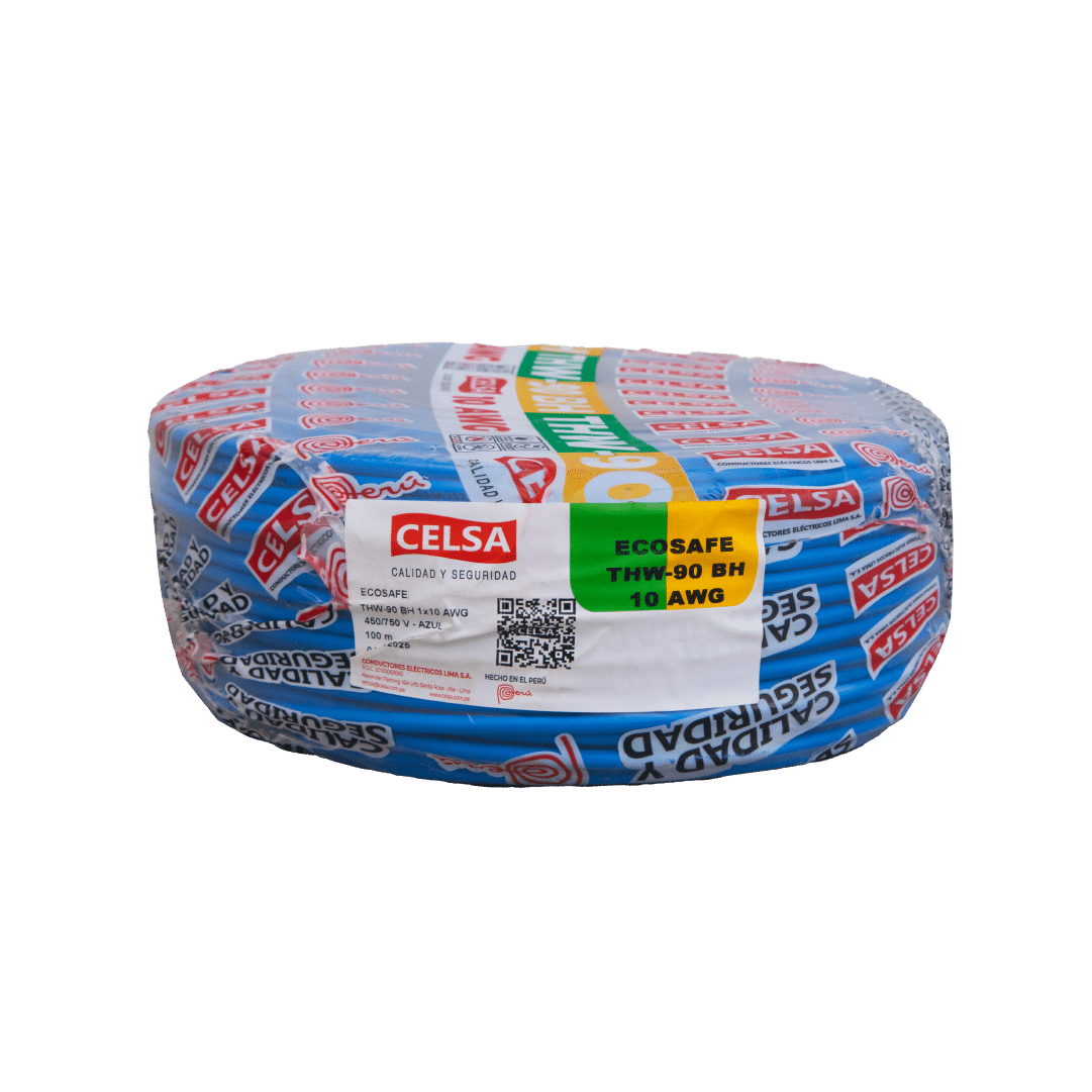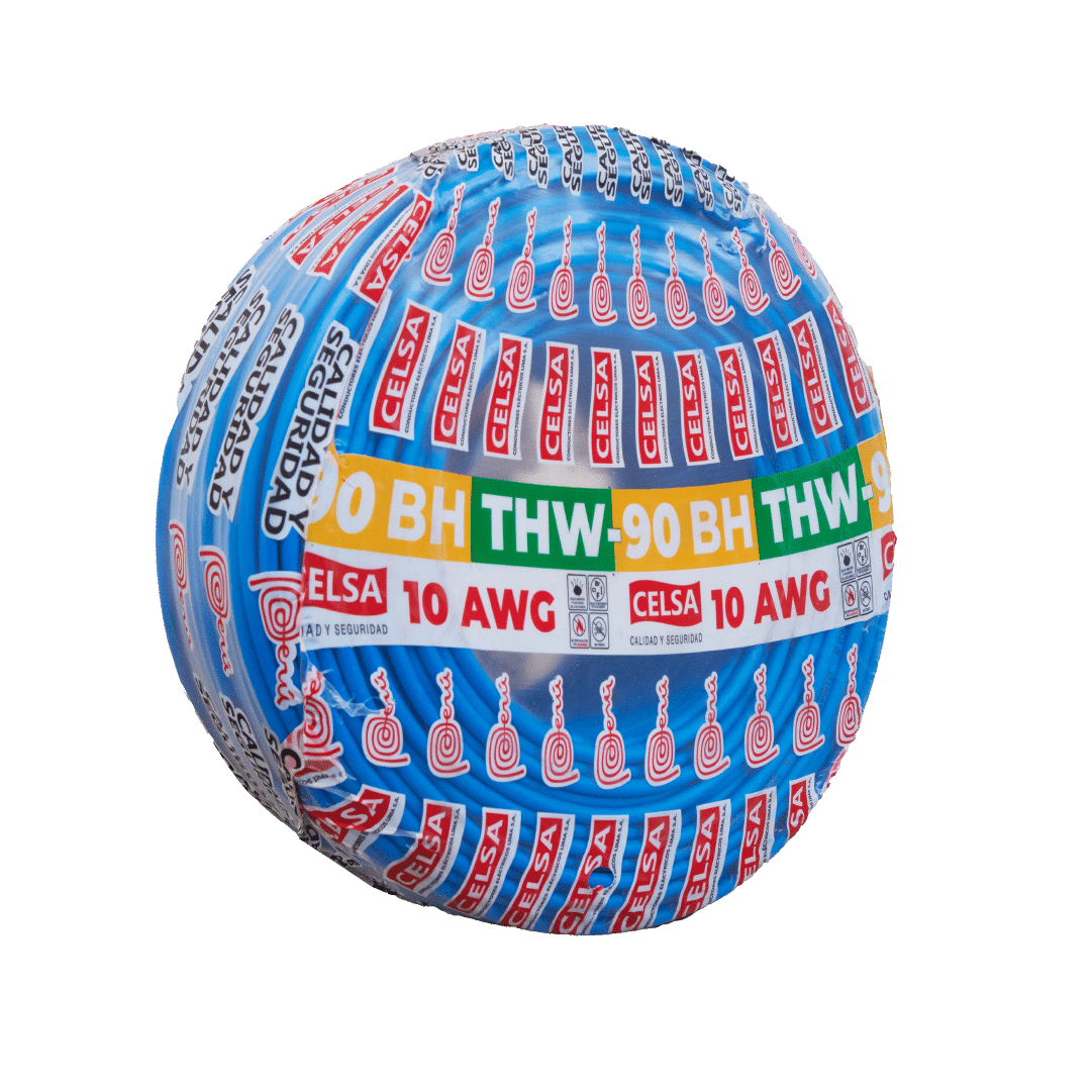El cable eléctrico Celsa THW-90 BH de 10 AWG en color azul es de cobre puro y garantiza un rendimiento óptimo y duradero en cualquier aplicación. Para instalaciones fijas, en edificaciones, interior de locales con ambiente seco o húmedo, conexiones de tableros de control y en general en todas las instalaciones que requieran mayor capacidad de corriente al cable TW-80. Su calibre de 10 AWG es ideal para instalaciones para el tablero.
