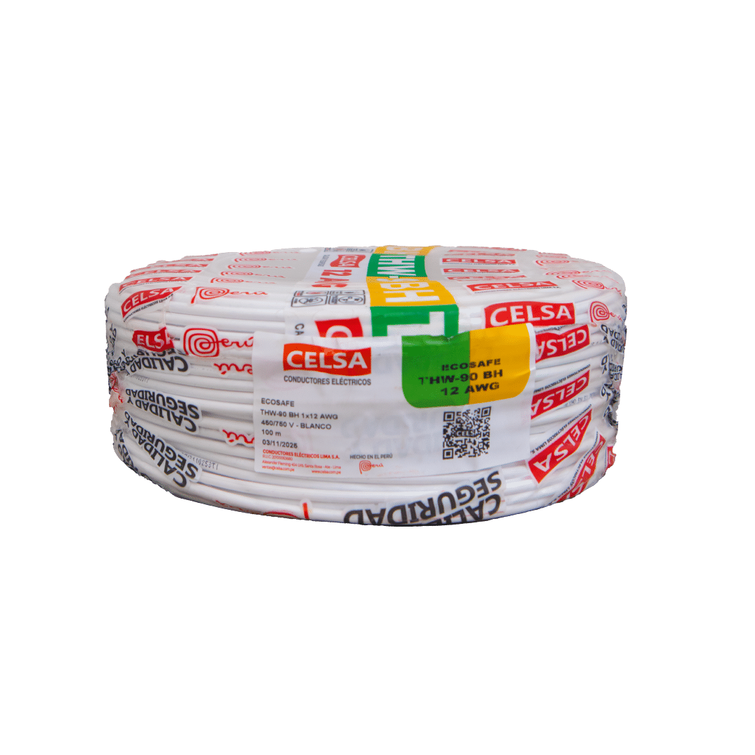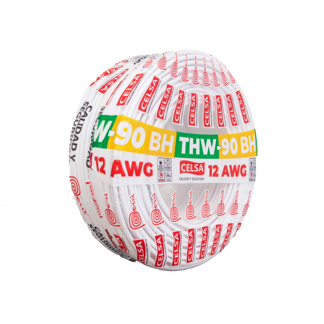 El cable eléctrico Celsa THW-90BH de12 AWG en color blanco es de cobre puro y garantiza un rendimiento óptimo y duradero en cualquier aplicación. Para instalaciones fijas, en edificaciones, interior de locales con ambiente seco o húmedo, conexiones de tableros de control y en general en todas las instalaciones que requieran mayor capacidad de corriente al cable TW-80. Su calibre de 12 AWG es ideal para instalaciones de tomacorriente.