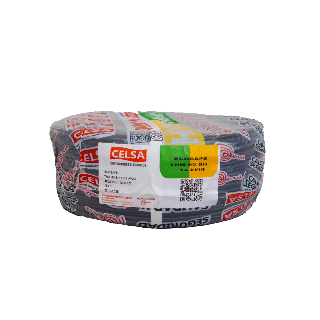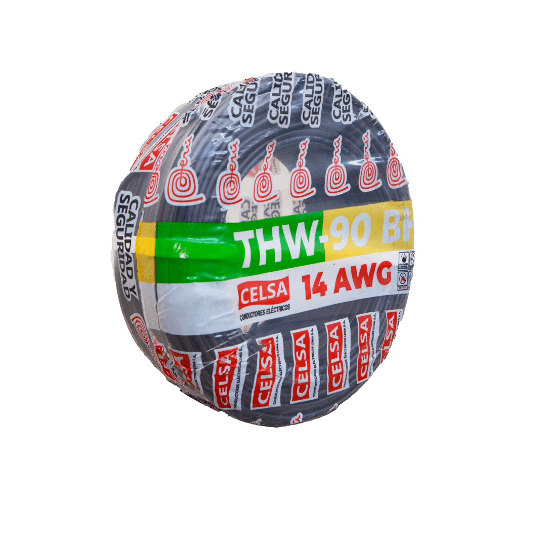 El cable eléctrico Celsa THW-90 BH de 14 AWG en color negro es de cobre puro y garantiza un rendimiento óptimo y duradero en cualquier aplicación. Para instalaciones fijas, en edificaciones, interior de locales con ambiente seco o húmedo, conexiones de tableros de control y en general en todas las instalaciones que requieran mayor capacidad de corriente al cable TW-80. Su calibre de 14 AWG es ideal para instalaciones de luminarias.